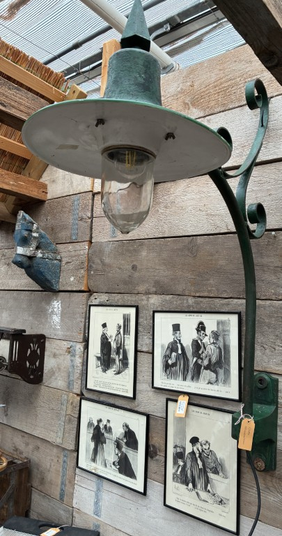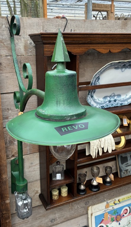 De lamp heeft een robuuste uitstraling en mooie oiuderdomssporen die het karakter versterken.