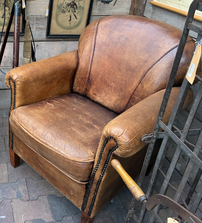 Vintage Schapenleren Club Fauteuil Cognac Chesterfield
