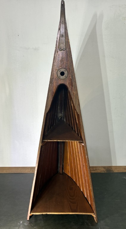 Breng een nautische sfeer in huis met deze prachtige, handgemaakte bootkast. Deze kast in de vorm van de boeg van een roeiboot is een echte 'conversation starter' en past perfect in een landelijk, industrieel of maritiem interieur. (geen namaak, maar deel van een echte wedstijdkano)