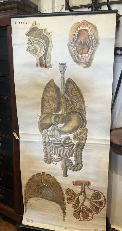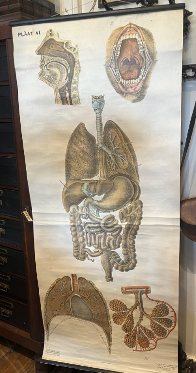 Bent u een verzamelaar van medische historie, liefhebber van curiosa of zoekt u een uniek pronkstuk voor uw interieur? Deze prachtige, originele wandplaat is een zeldzaam overblijfsel uit het begin van de 20e eeuw en biedt een gedetailleerde blik op de menselijke anatomie.