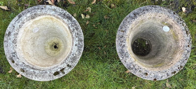 OverzichtSet van 2 Antieke/Brocante Betonnen Tuinvazen – Medici model