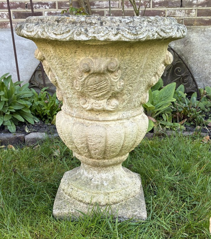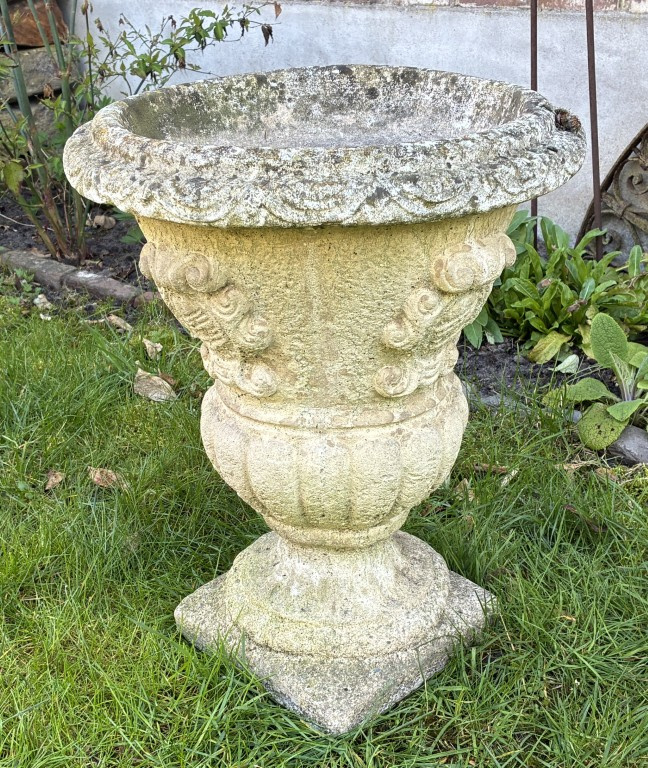 Karaktervolle Antieke Stenen Tuinvaas – Barokke Campana-stijl