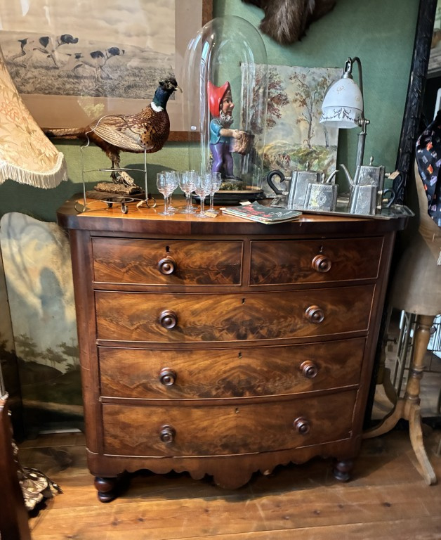 Prachtige antieke Engelse ladenkast, vervaardigd uit fraai gevlamd hout met een schitterende, warme houttekening. Deze elegante kast beschikt over twee kleine laden bovenin en drie…€ 695,00