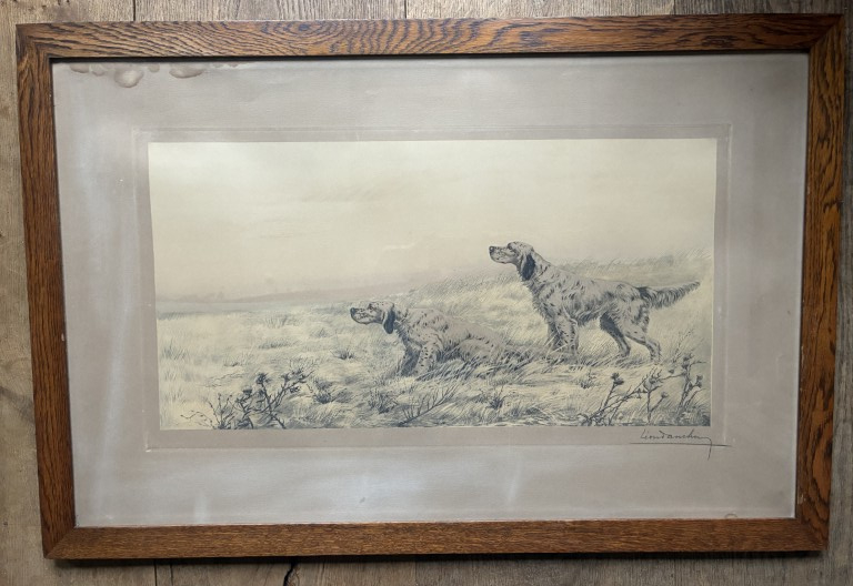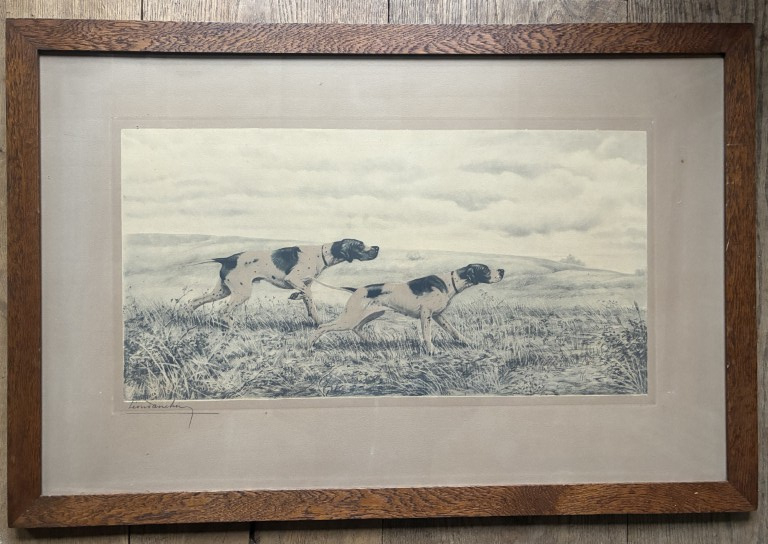 Oude Hondenprent (Jacht honden)Oude ingelijste Jachthonden prent